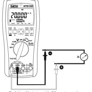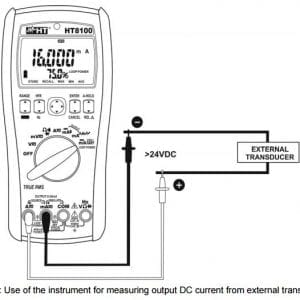 The HT8100 is a meter performing measurements as TRMS DMM as well as a process calibrator generating 0-20mA and 4-20mA DC current signals. As DMM the instrument carries out AC/DC/AC+DC voltage measurements up to 1000V and AC/DC/AC+DC current measurements up to 1A.