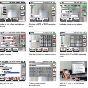 The Macrotest Series easily measures earth ground resistance (2 and 3 Point Method) and soil resistivity (4 Point Method) with an easy to understand graphical user interface and color touchscreen. The meter can store internally up to 999 measurements. The included software enables easy data transfer to a computer, tablet or phone via built-in Wi-Fi or USB connection where it can be archived or used to generate reports.In addition to volt ampere method other testing modes can be adopted as follows: